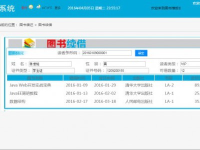 (11)单击“图书借还”/“图书续借”命令,对图书续借信息进行添加操作。